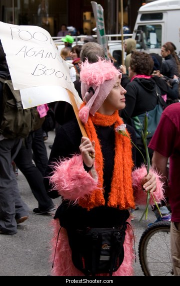 "Poodle against the war doodle"... I think, I didn't catch all of it.