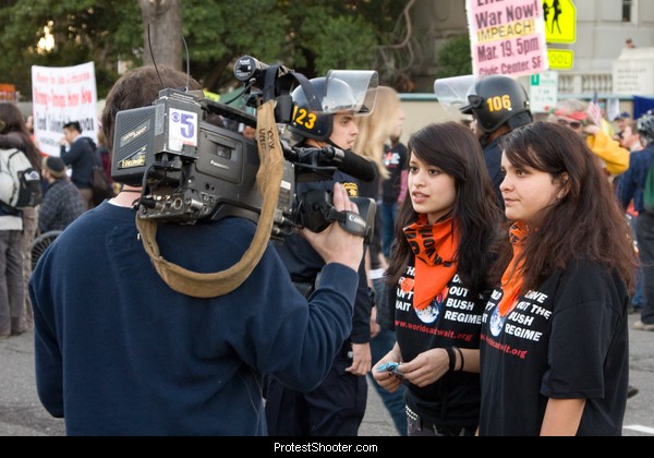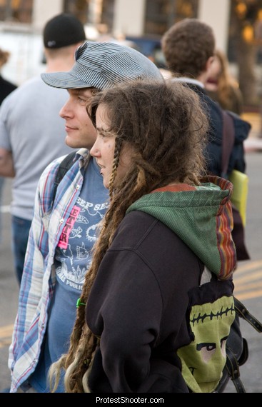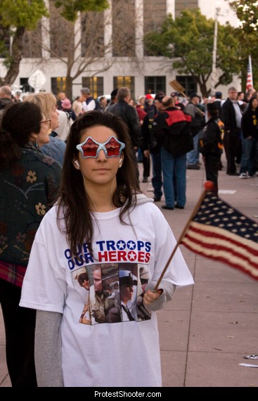 Youth. Note which side she's on, and that dot under her lip is a piercing. Just because some group of Berkeley High students were recruited by World Can't Wait doesn't mean all the young people were anti-Marine - far from it.