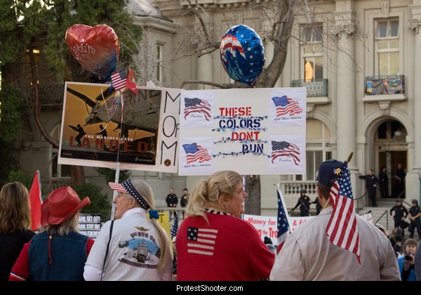 Again, very typical - just some gal who made a sign and is holding it up with dignity and maybe a little amusement at the barking of the moonbats.