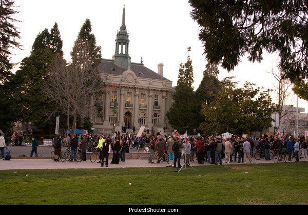 And with one last look back we curse the darkness (I was doing all kinds of technical stuff to get these shots as it was) and head home. The meeting lasted until well past midnight and resulted in a partial pull-back by the city council (they tempered their language, basically). Berkeley PD made $93,000 in overtime so it cost the city at least that much, boycotts aside.