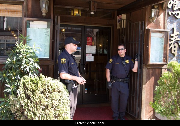I was confused as to why there were no police - but they were staying out of the sun on the other side of the street keeping an eye on things. (Update: I got a number of comments about this guy's chin - it's not unusual to see facial hair, even rather ratty unkept hair, on Berkeley PD).