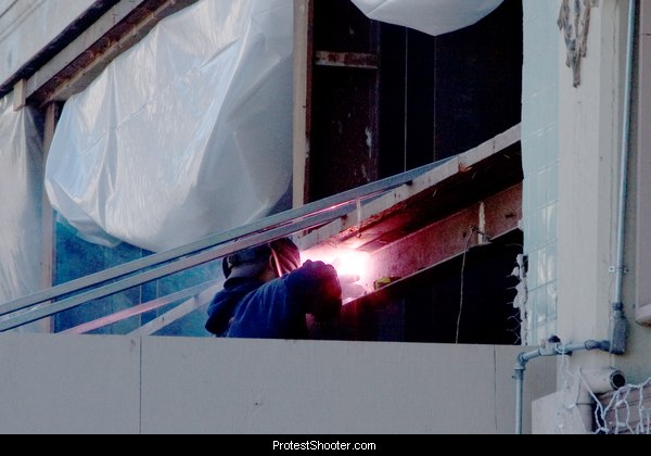 This is on the way back for my second pass. This is a welder. You know, a guy with a job. Unlike the protesters... except this is their job, a lot of these people at a small event like this do this full time.